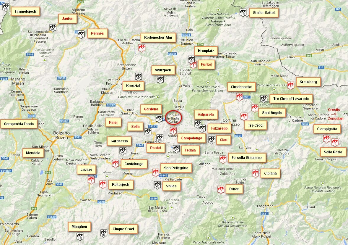 So, the first week of the Giro d’Italia 2015 we’ll stay in Corvara, which on the map from Cycling the Alps looks like the epic center of cycling paradise.