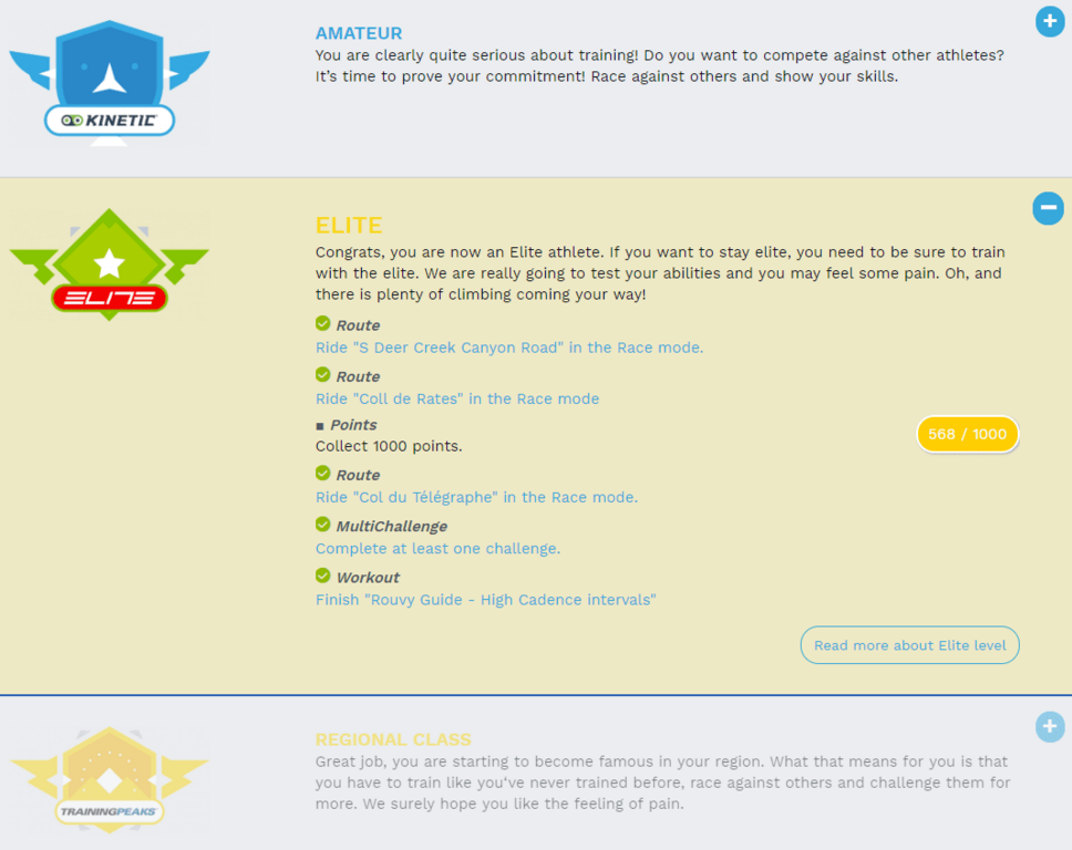 Second, multi ride challenges: if a requirement for any level is that you complete a challenge, but you haven’t quite reached that level yet (some TSS points short for instance), you can already start the challenge before you advance.