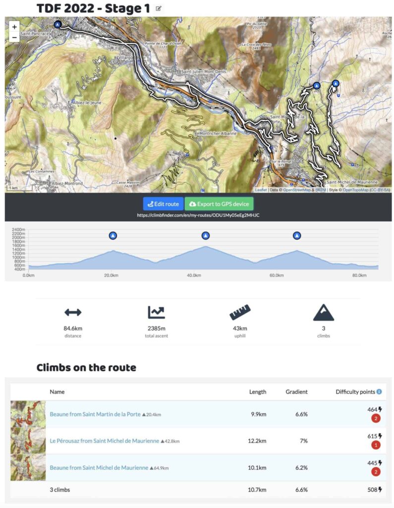 I’m resorting to either ClimbFinder.com or RideWithGPS.com to construct my stages for the rest of my “roadbook”.